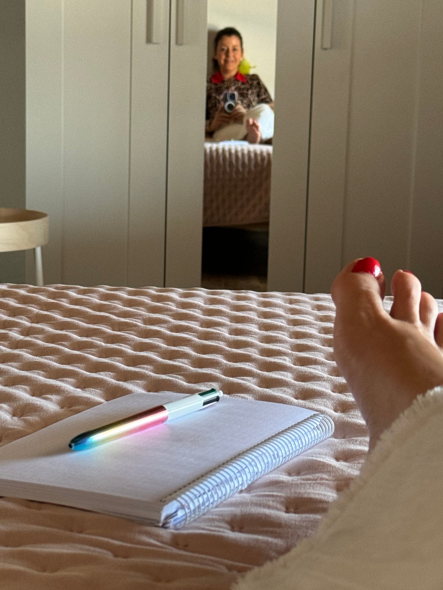 Lo escuché en un podcast de psicología, lo dijo una eminencia, el Doctor Rojas Montes; que había que actuar y no tanto rumiar pensamientos, y a una "Doña Indecisiones" como yo no le puede encajar mejor el consejo, así pasó con este proyecto, #AlbaceteFlipaYVete, me hacía mucha ilusión, se dio un momento entre crianza y excedencia sumando poca ilusión por volver a una rutina que me iba a avocar a una indeseable espiral de ansiedad por no llegar a ningún lado, por no sentirme a gusto, y me tiré al vacío, y aquí estoy...ilusionada con el proyecto, tomando apuntes sobre la cama de la casa del pueblo de mi esposo, Pozocañada, sin pensar tampoco demasiado en la estética de la foto, porque este blog va de eso, de las cosas que hacemos sin pensar esperando que no nos salgan mal... y poco mas, que no a todo en esta vida hay que darle doscientas mil millones de vueltas. Se esfuerza uno por hacer una cosa lo mejor que puede y punto, poco más que añadir.